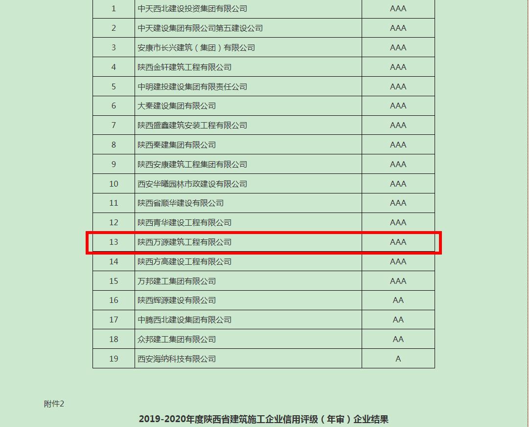“陜西萬源“獲2021年度陜西省建筑施工企業(yè)信用 |